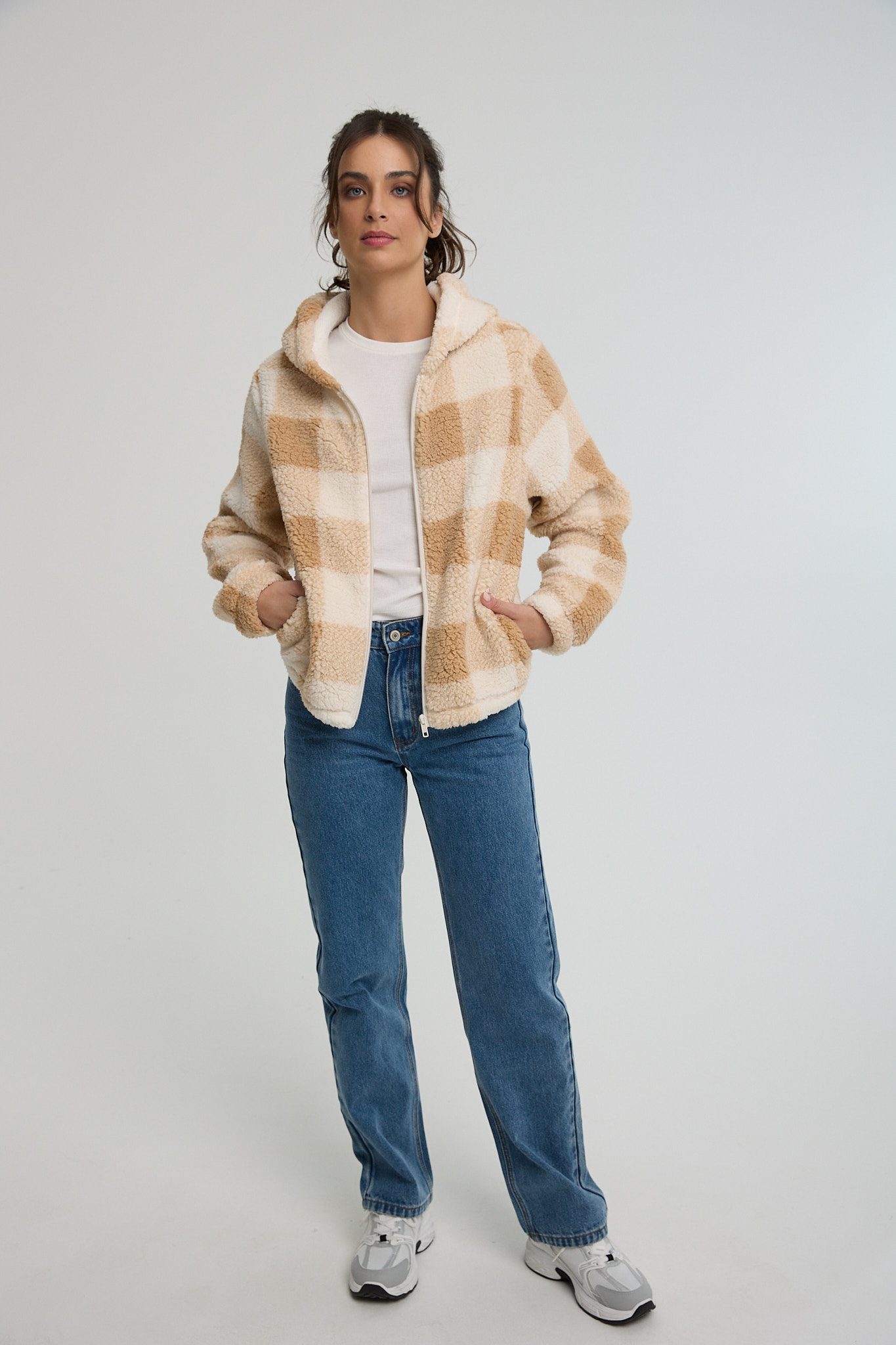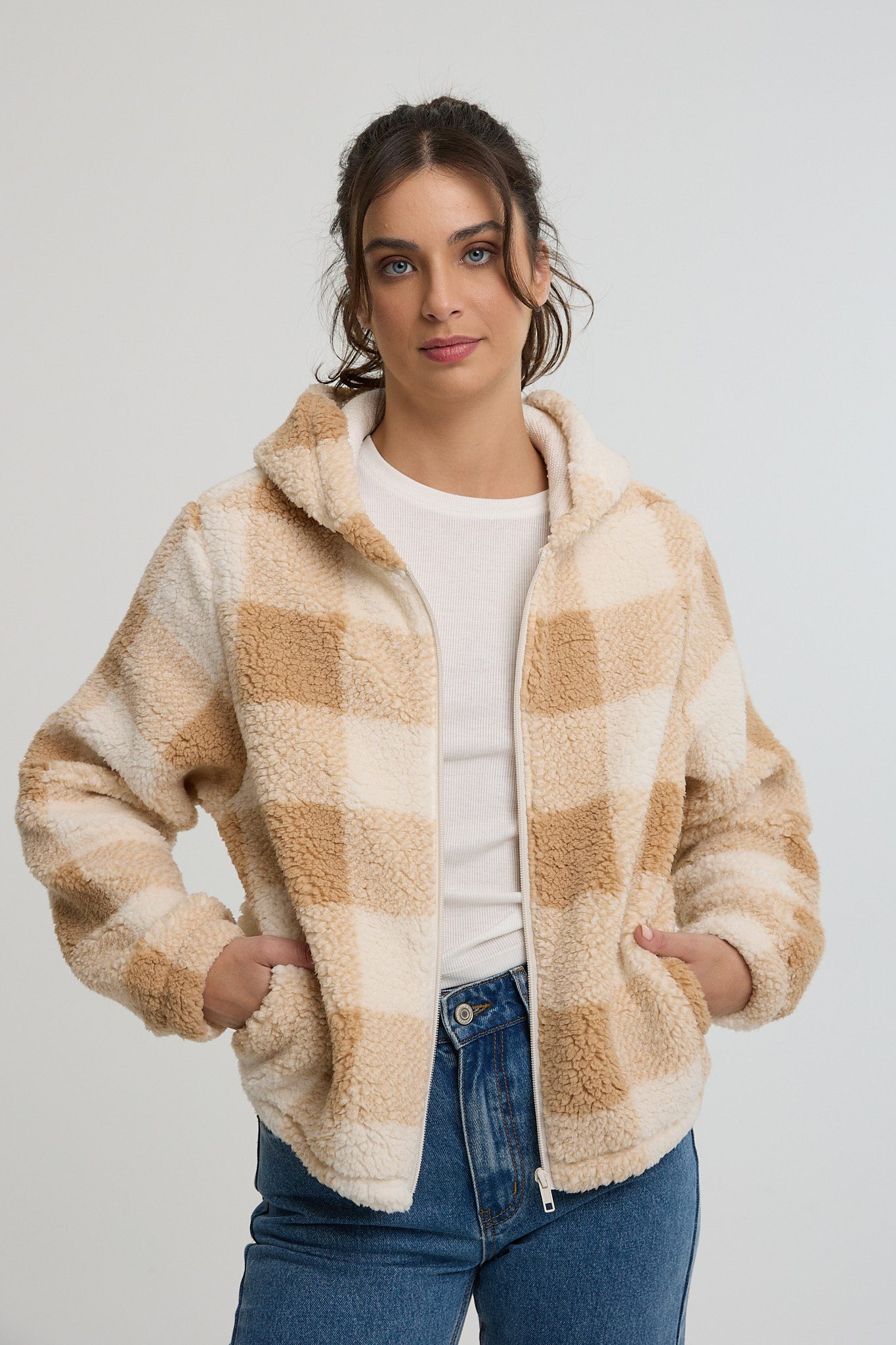 ג'קט פליז משובץ
